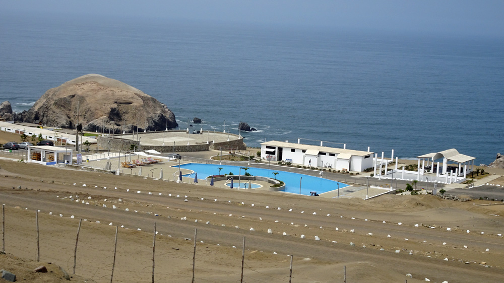 Gegen Ende bin ich zwei mal abgebogen, um eine Unterkunft zu finden. Im ersten Ort wenn man das so nennen kann nichts, im zweiten Ort ein lauter Versammlungsraum, ein weißes Häuschen wo Hostal draufstand aber niemand öffnete, weiterfahren. Ich traf kurz danach auf ein nobles Restaurant umgeben mit Rasen und fragte mal nach, ob ich mich darauf niederlassen könnte. Dies wurde abgelehnt.