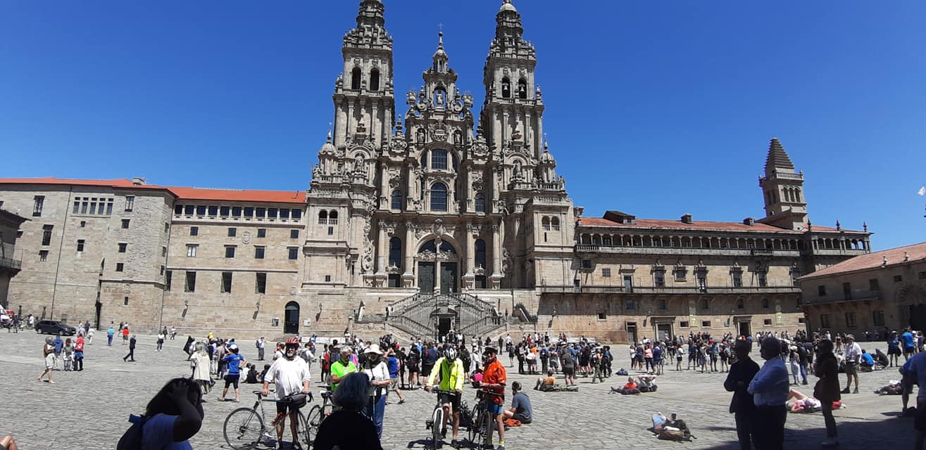Freitag, 10.06.2022 An diesem Tage erreichten wir unser Ziel Santiago de Compostella, etwas außerhalb liegt eine Wohnananlage „Albergue Monte do Gozo“, in der wir uns für zwei Nächte einmieteten. Wir besuchten am frühen Abend mit einem Taxi noch die Innenstadt natürlich die Kathedrale.